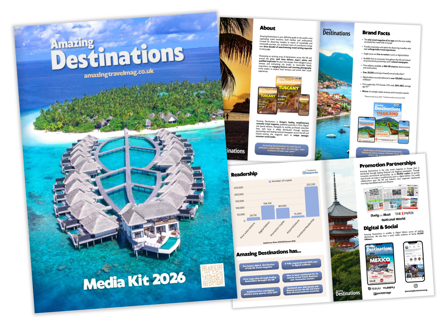 Amazing Destinations is your passport to the world’s most captivating places, from iconic cities to hidden gems. With comprehensive coverage spanning the UK and a diverse array of global destinations, the magazine inspires and informs today’s traveller in search of extraordinary experiences. Whether you’re planning a romantic city escape, a memorable family adventure, or a once-in-a-lifetime journey, each issue delivers expert advice, engaging features, and breathtaking photography. Published quarterly, Amazing Destinations is available as a complimentary digital edition and in print at all good booksellers and by subscription. Additional copies are distributed through exclusive partnerships with leading national newspapers and can also be found at major airports and leisure venues.
